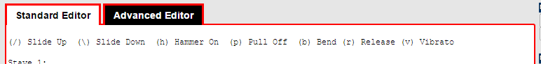 step two: use the Advanced Editor! When you are logged into the Create Tablature Page, you should see two tabs at the top "Standard Editor" and "Advanced Editor". The advanced editor has all of the keyboard functionality needed to cut, copy and paste you guitar tabs.
