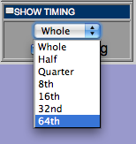 The Timing select box offers you seven different timings: Whole, Half, Quarter, 1/8th, 16th, 1/32nd,1/64th