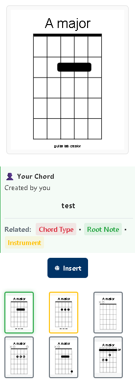 - One-Click Insertion - Found the perfect chord? Click "Insert" and it's instantly added to your tablature at the cursor position.